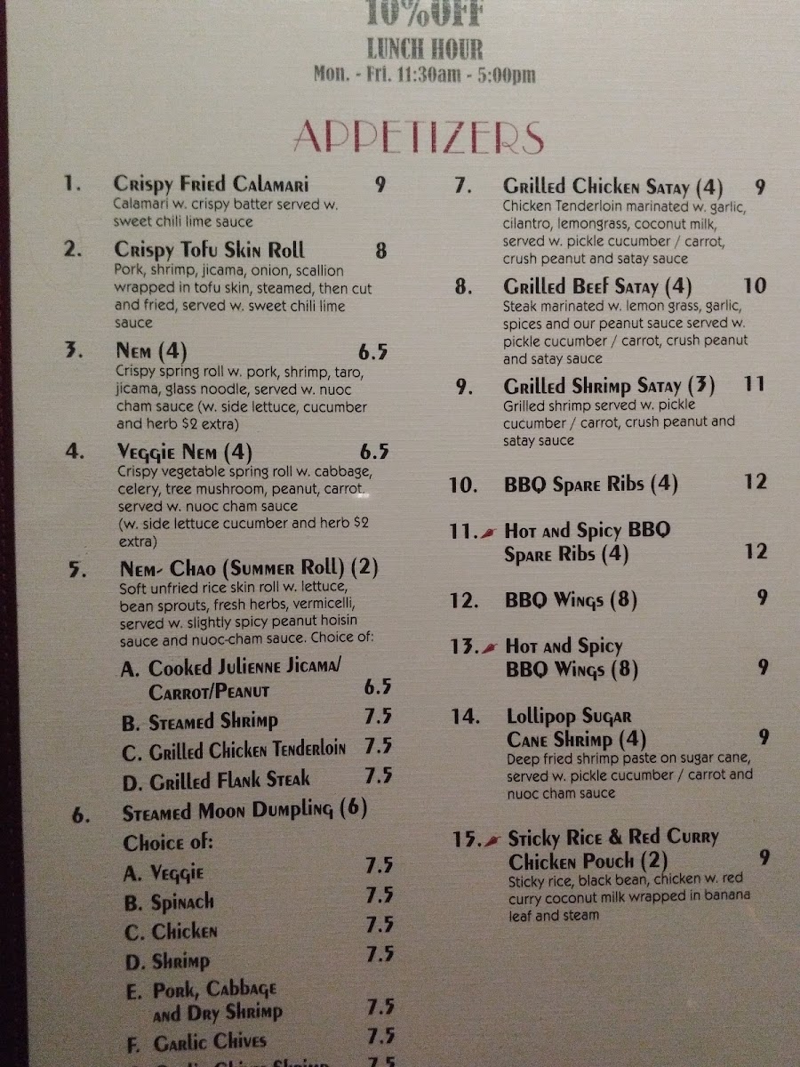 Vietnaam specializes in a variety of meals that cater to every palate. With a menu highlighting savory poultry dishes like the Red Curry Chicken—slices of tender white meat chicken simmered in a fragrant red curry and coconut milk sauce—or the aromatic Ginger Duck, featuring succulent duck sautéed with shiitake mushrooms and fresh vegetables, each bite is an explosion of flavor. Seafood lovers will be enchanted by the Vietnamese Seafood Bouillabaisse, a rich and spicy broth brimming with crab claw, mussels, and shrimp that offers a taste of the sea like no other.